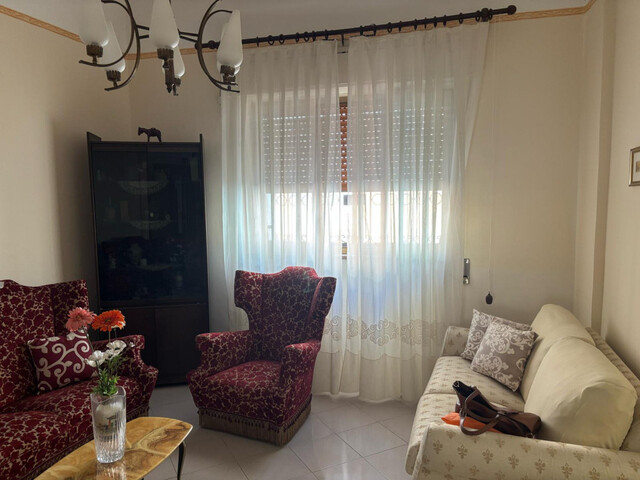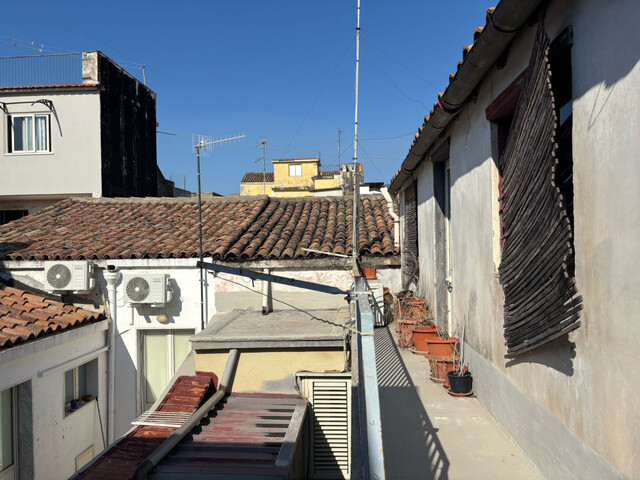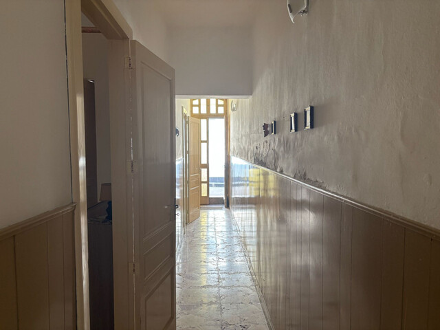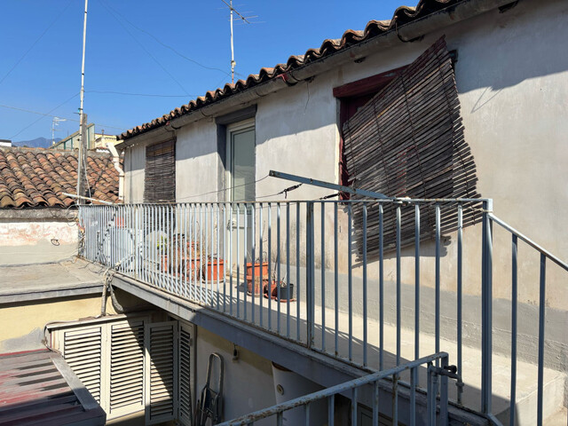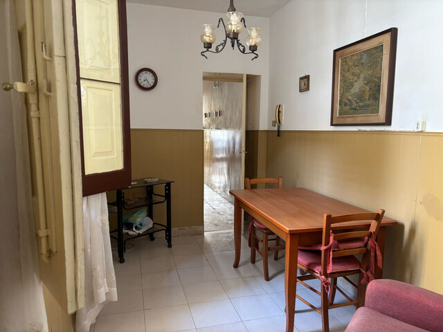 The property, located on the ground floor, covers a surface of approximately 120 m². The entrance opens onto a long corridor leading to two spacious rooms and a habitable kitchen overlooking the internal courtyard, an ideal place for moments of outdoor relaxation. From the courtyard, an iron staircase gives access to two additional upstairs rooms, providing extra space for bedrooms, a study, or a hobby area.