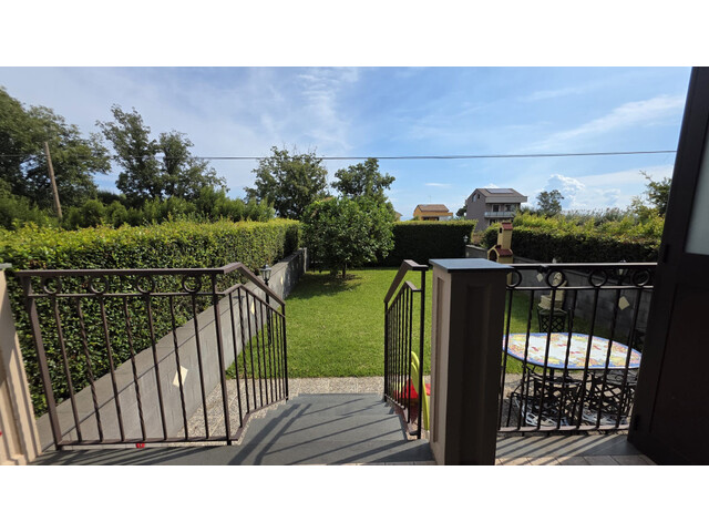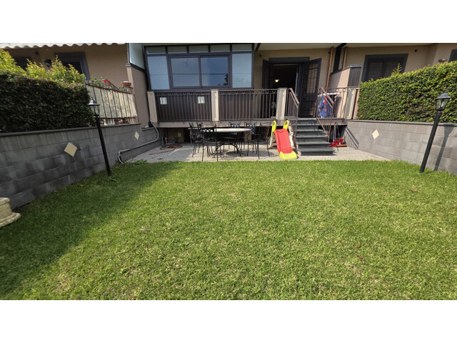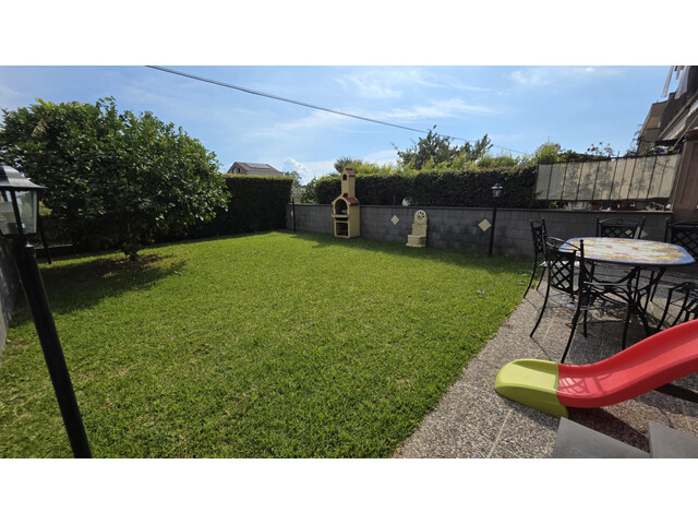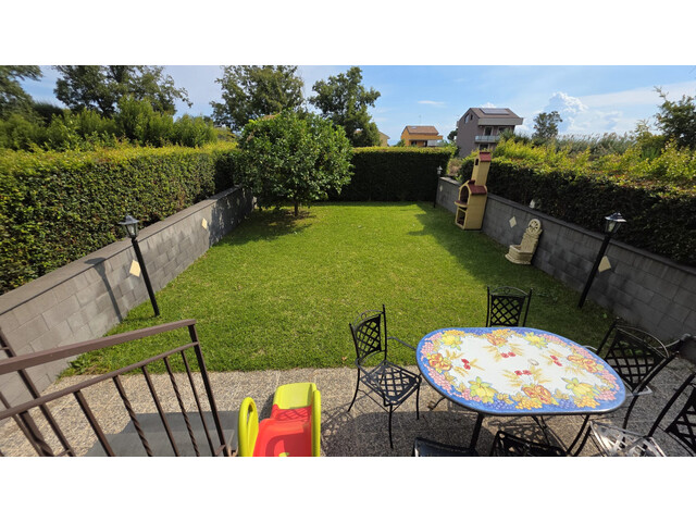 Al piano terra si accede a un ampio e luminoso salone con cucina all’americana che si affaccia direttamente sul giardino privato, ideale per momenti di relax o convivialità, oltre a un bagno con doccia. La scala interna conduce al piano superiore, dove si sviluppa la zona notte composta da tre camere tutte balconate e un secondo bagno dotato di vasca. A completare la proprietà, un pratico garage con accesso diretto all’interno della villetta, che garantisce comfort e sicurezza.