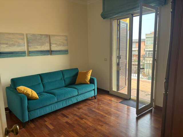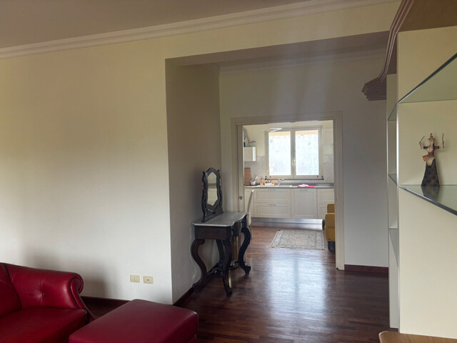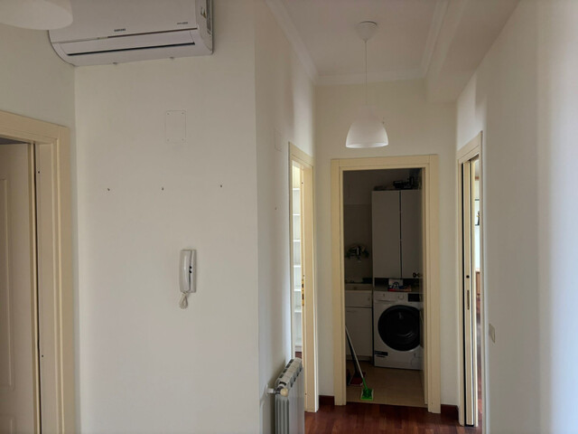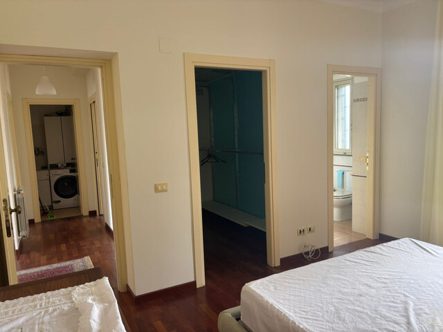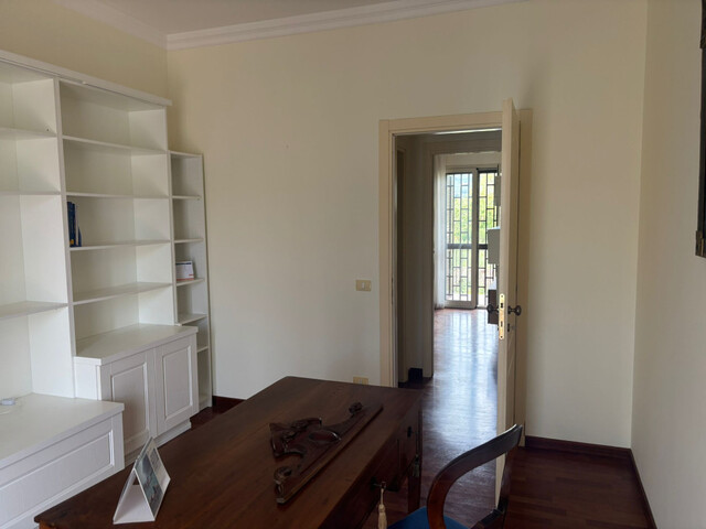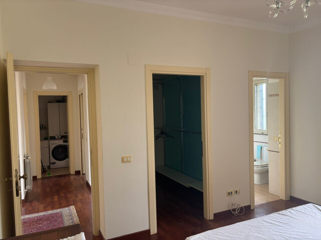 All’ingresso si viene accolti da un luminoso salone che affaccia su uno dei due balconi, perfetto per creare una zona living accogliente e spaziosa. La cucina, anch’essa molto comoda e funzionale, viene lasciata arredata con una cucina su misura di ottima fattura. La zona giorno è completata da uno sgabuzzino utile come ripostiglio e da uno studio ideale per chi lavora da casa o desidera uno spazio dedicato. La zona notte è composta da una camera, un bagno con doccia, e dalla camera da letto matrimoniale che rappresenta un vero e proprio ambiente padronale: dispone infatti di bagno in camera con vasca, cabina armadio e affaccio sul secondo balcone.