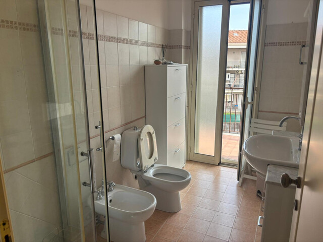 Located in one of the most central and well-served areas of Riposto, this apartment in via Libertà enjoys a truly convenient and pleasant location. The area is residential and quiet, a few steps from shops, supermarkets, schools, services and a short distance from the seafront and the tourist port, all making it ideal for those who want to live in a comfortable and well-connected setting. The property is located within an elegant residential complex built in 2007, well maintained and cared for, equipped with an electric gate and lift. It is located on the first floor of a building of only two floors and is spread over an area of approximately 120 m2. At the entrance you are greeted by a bright lounge overlooking one of the two balconies, perfect for creating a welcoming and spacious living area. The kitchen, which is also very comfortable and functional, is left furnished with a custom-made kitchen of excellent workmanship. The living area is completed by a closet useful as a storage room and an ideal study for those who work from home or want a dedicated space. The sleeping area is made up of a bedroom, a bathroom with shower, and the double bedroom which represents a real master room: it has an en-suite bathroom with bathtub, walk-in closet and overlooking the second balcony. The apartment is equipped with an armored door, aluminum frames with double glazing and mosquito nets, parquet in excellent condition, independent air conditioning and heating system, thus guaranteeing comfort and practicality in every season. The property also includes a convenient one-car garage and additional modern furniture, while no antique furniture will be left behind. Condominium expenses are low, equal to 32 euros per month. The property, completely renovated and in perfect condition, is ready to be inhabited without the need for interventions. The double east–west exposure offers a pleasant natural brightness throughout the day, further enhancing the internal environments.